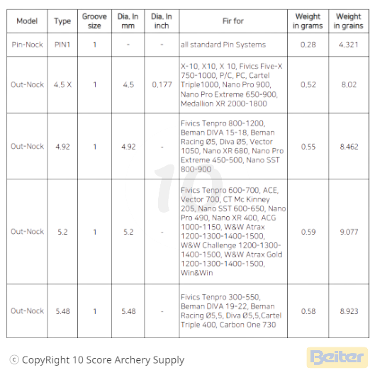 Beiter Out Nock Collection – 4.92/1, 5.2/1, 5.48/1, and 4.5/1 X Models